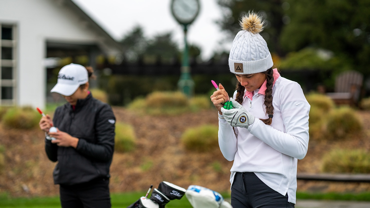 We had some serious competitors at our Validation filming for new Pro V1 and Pro V1x at Pasatiempo Golf Club, including Marissa M. (left) and Kiara R. (right). They brought the same focus to marking their prototypes that they devoted to hitting shots.1/12