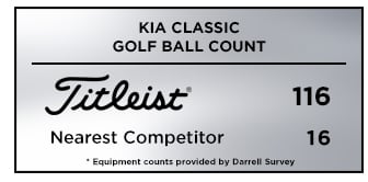 Titleist was the top choice in golf balls at the Kia Classic with more than 4 of every 5 players (116) trusting a Titleist Pro V1 or Pro V1x, more than 10 times the nearest competitor with 16.