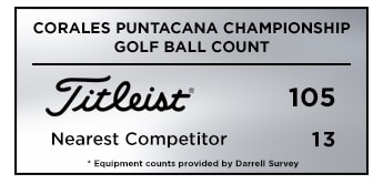 Titleist was the overwhelming golf ball of choice at the Corales Puntacana Resort & Club Championship. One-hundred-five players trusted a Pro V1 or Pro V1x golf ball at Corales Golf Club, more than eight times the nearest competitor with 13 and more than all competitors combined.