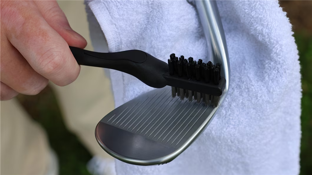 - Use a groove brush to scrub the face of the club and get into the grooves.